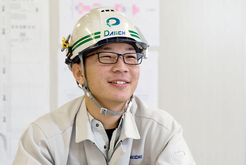 現場監督として工程・品質・安全の管理を行っています。高校の土木学科で学んだことを活かせると思って第一建設に決めました。